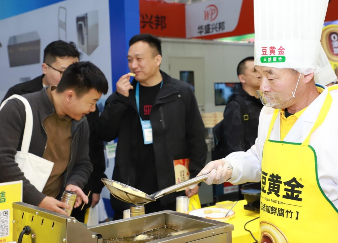此次展會為期三天,作為參展商之一,豆黃金展示了現在受更多客戶喜歡的0添加的豆制品,黑豆豆花、包漿豆腐、鮮腐竹、豆泡等等很多產品
